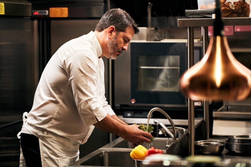 First, after sanitizing kitchen surfaces with chemical disinfectants, an extra rinse of clean water was needed to wash away leftover residues. But even after a thorough rinse, these chemical residues were still found from the use of pungent chlorine-based disinfectants. Kitchen staff were required to mix precise quantities of chemicals disinfectants, a time-consuming process that’s prone to human error due to the meticulous process of mixing a cocktail of chemicals on a regular basis. If these chemicals aren’t mixed properly, they could be too strong and find their way into food, resulting in guests and employees falling ill, and potential legal trouble.